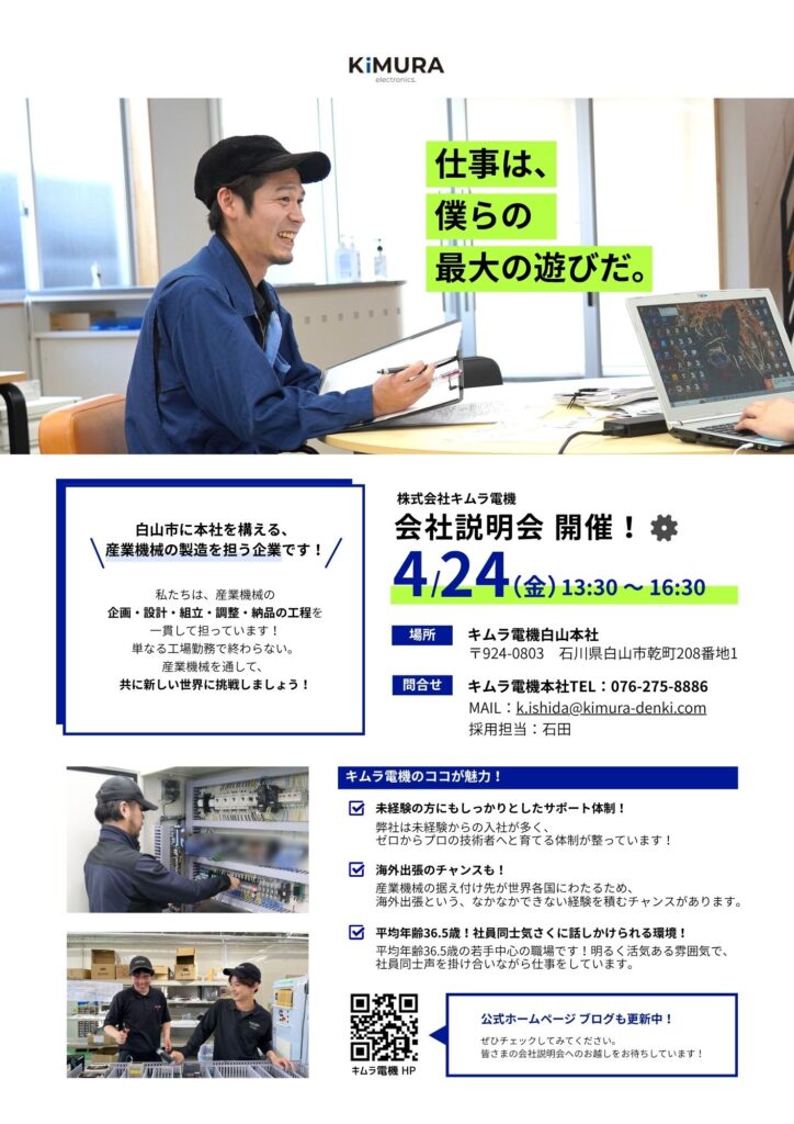 /キムラ電機本社TEL:076-275-8886 (採用担当:石田)